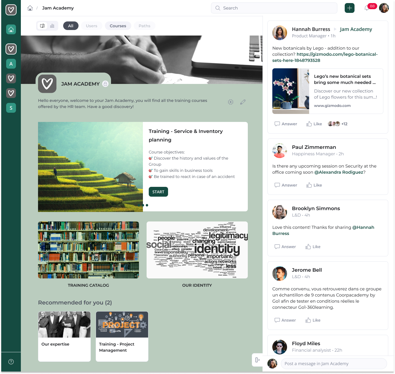 - Academies: Power your upskilling flywheel with collaborative learning academies. Launch branded academies in minutes. Leverage AI to curate learning programs from the web, or 3rd party libraries. With Academies, never decline a training initiative again.